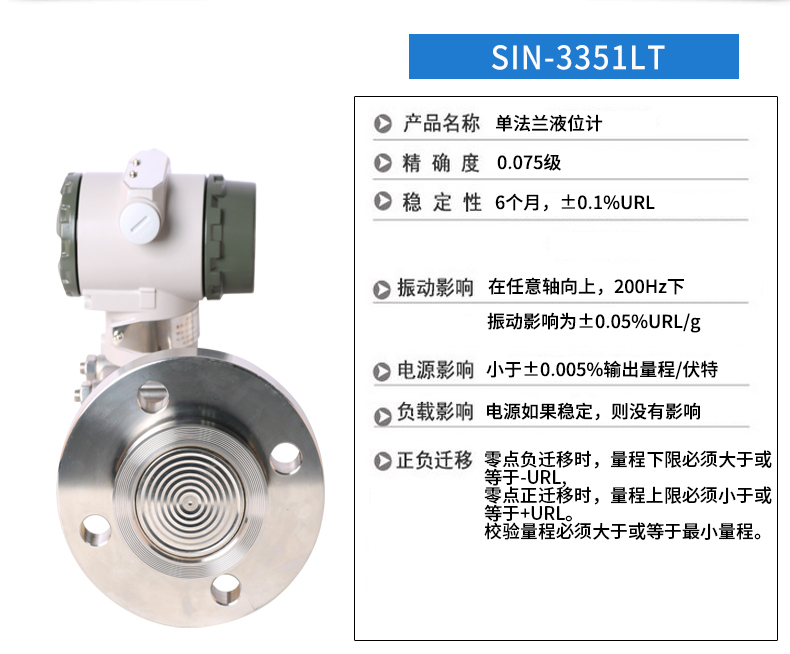 SIN-3051LT型單法蘭差壓液位變送器是我公司引進國外先進技術(shù)和設(shè)備生產(chǎn)的新型變送器,關(guān)鍵原材料,元器件和零部件均源自進口,整機經(jīng)過嚴格組裝和測試。