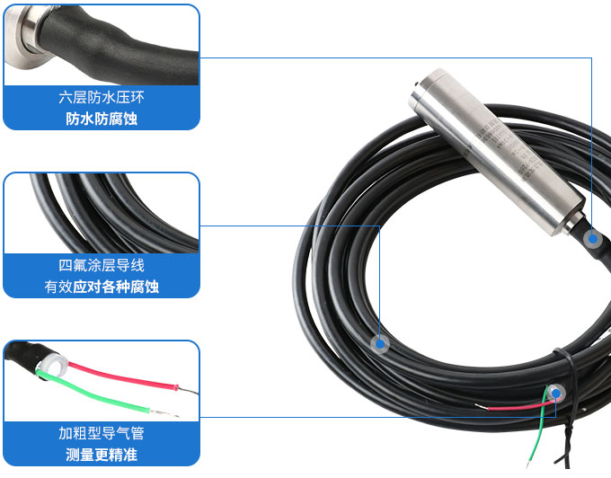 SIN-P260投入式液位變送器由高性能擴(kuò)散硅壓阻式壓力傳感器作為測量元件,把與液位深度成正比的液體靜壓力準(zhǔn)確測量出來。